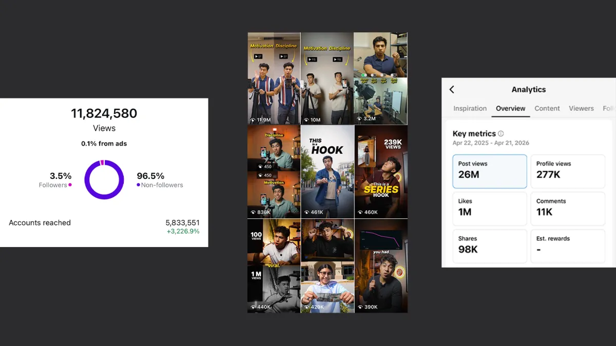 In over 1 year, I generated 53 million views across my TikTok and Instagram, all without spending a single dollar on ads.